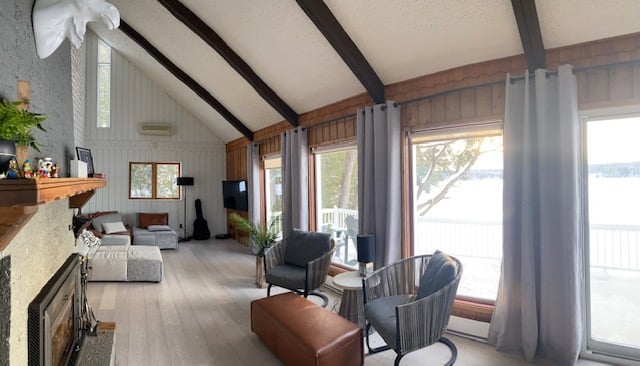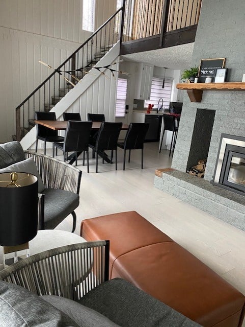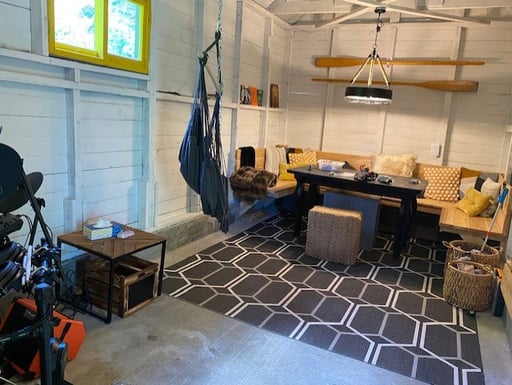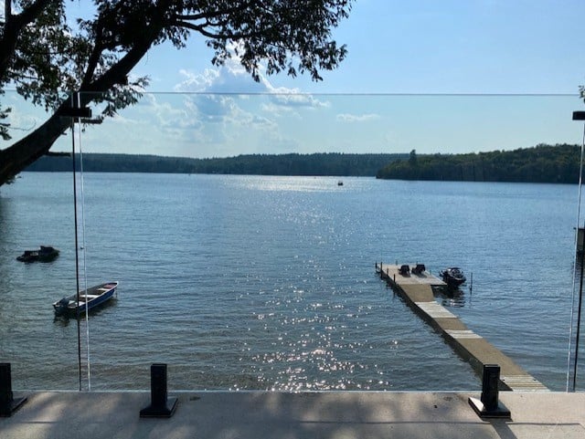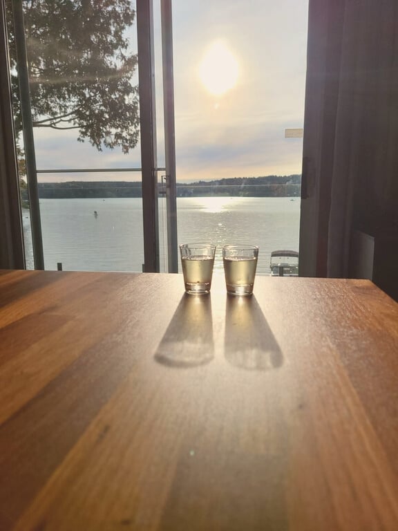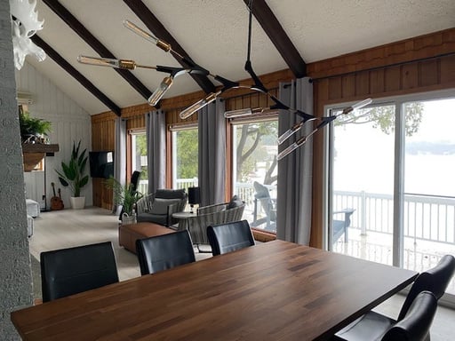 L'aire ouverte du rez-de-chaussée offre une vue panoramique sur le lac et les couchers de soleil.